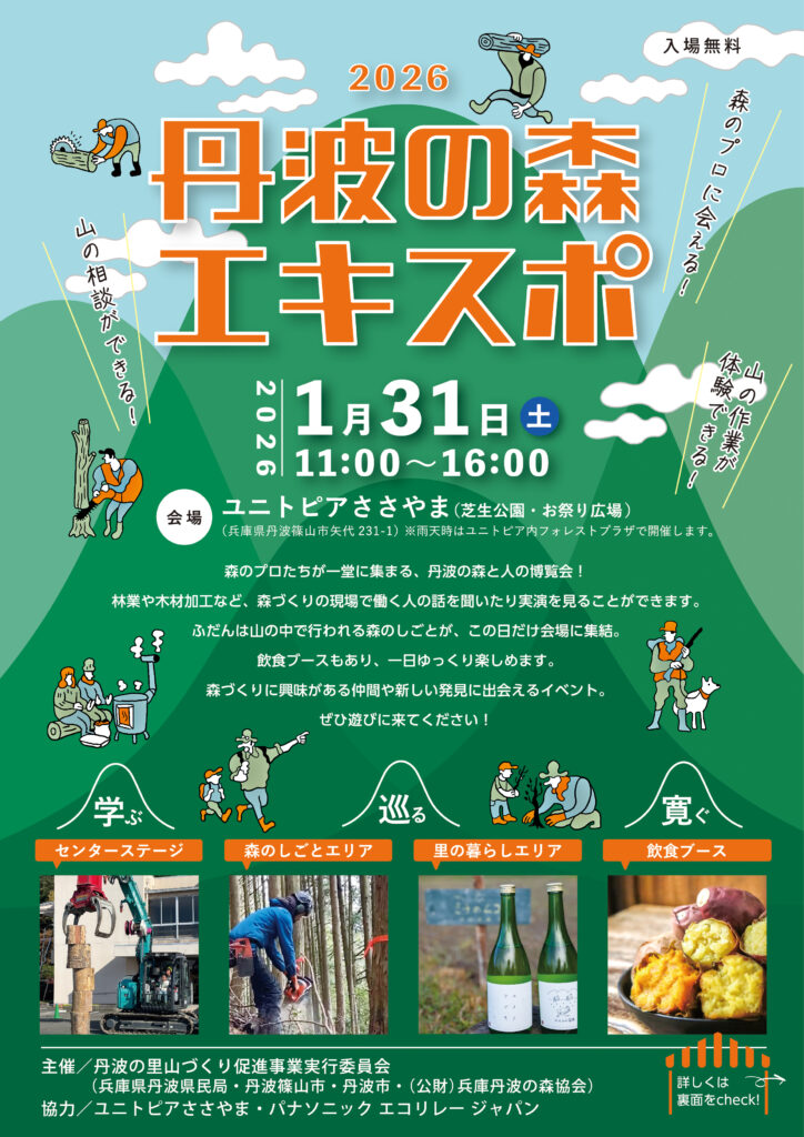 丹波地域の森や里山に関わる人・しごと・取り組みが一堂に集まるイベント「丹波の森エキスポ」 を開催します。 林業や木材、里山の暮らしなど、ふだんは現場で行われている森のしごとを、見て・聞いて・体験できる一日です。展示やワー […]